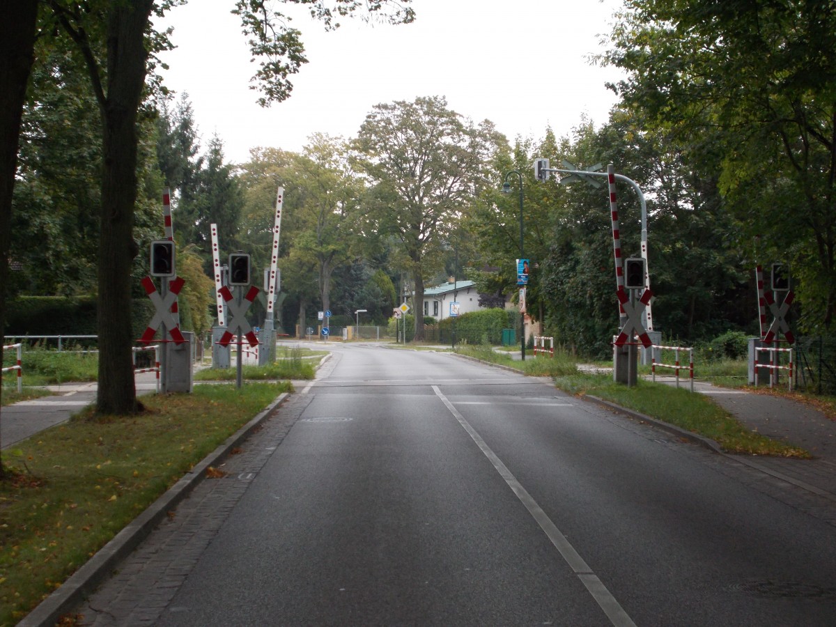 Bahnübergang an der Strecke zum Zementwerk Rüdersdorf(b.Berlin) in Petershagen am 14.September 2014.