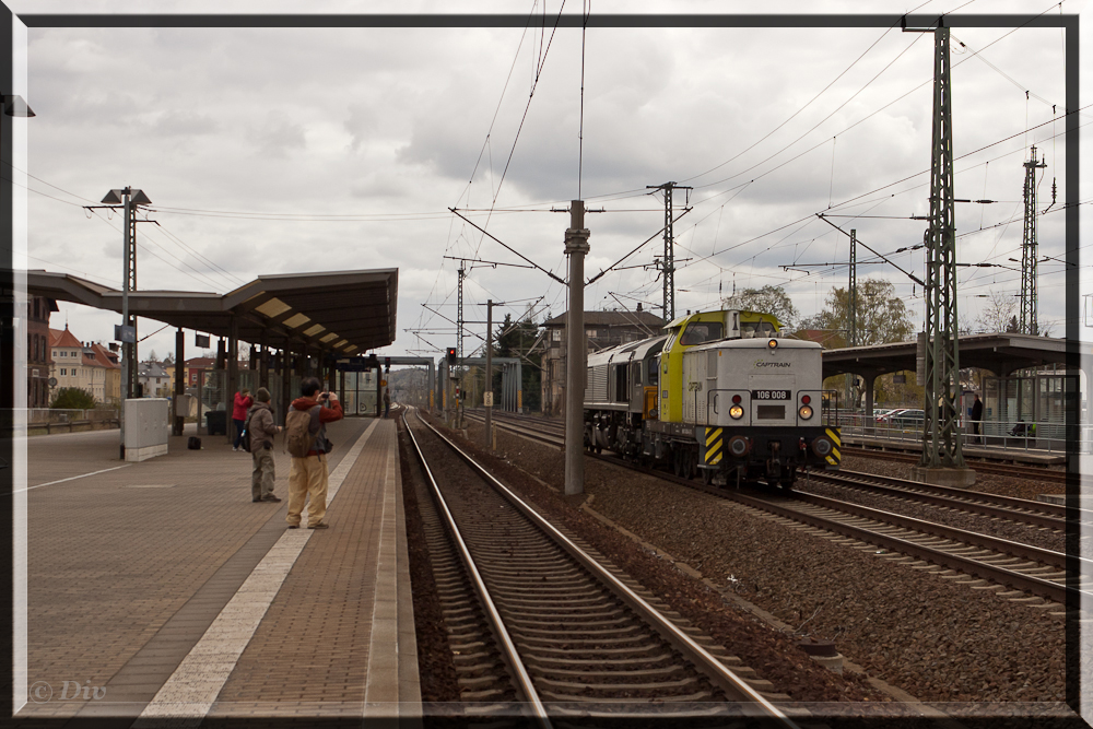 Captrain V60 008 und eine Class 66 hier in Heidenau am 18.04.15