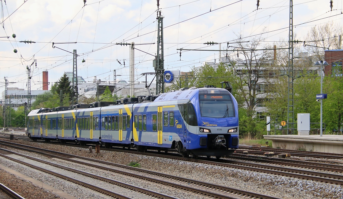 Der Meridian ET 310 (1 430 310) aus Richtung München Hbf kommend. Aufgenommen am München-Heimeranplatz am 22.04.2014.