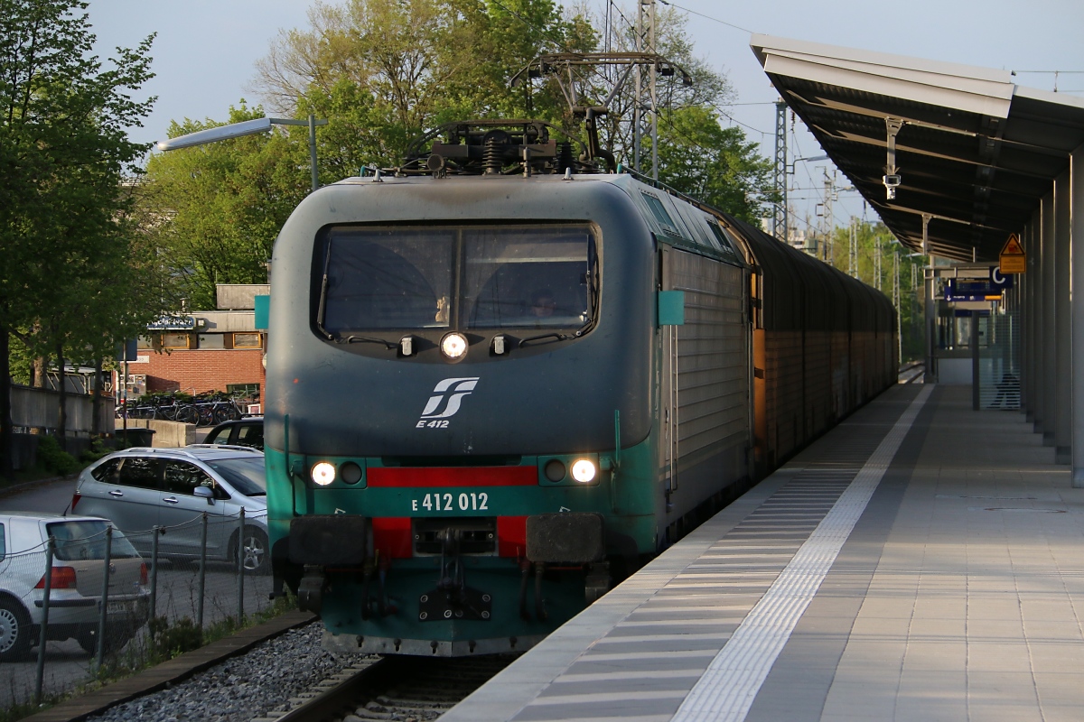 Diese italienischen E412 012 kam am Abend des 22.04.2014 mit ARS-Autotransportwagen in Richtung Laim durch Oberschleißheim.