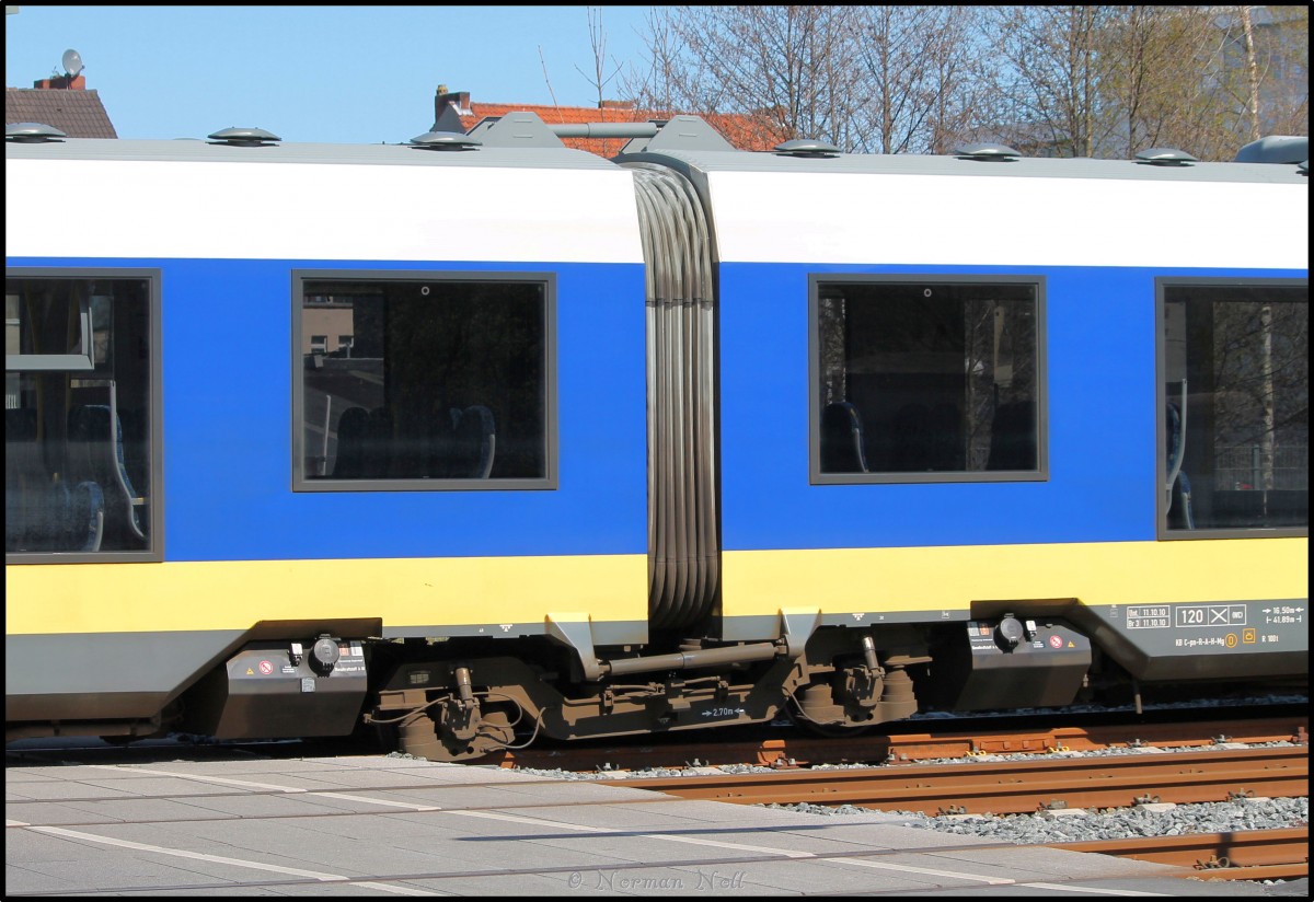 Hier hat 648 872-9 der NWB bei einer Rangierfahrt im Bf Wilhelmshaven eine geschlossene Gleissperre überfahren, wie man hier schön sehen kann steht noch die zweite Achse vom mittleren Drehgestell auf der geschlossenen Gleissperre und ist dabei auf dem Bahnübergang Metzerweg zum stehen gekommen.Ob hier ein Technischer defekt vorlag oder ob das Rangiersignal mißachtet wurde ist mir nicht bekannt. 18/04/2015