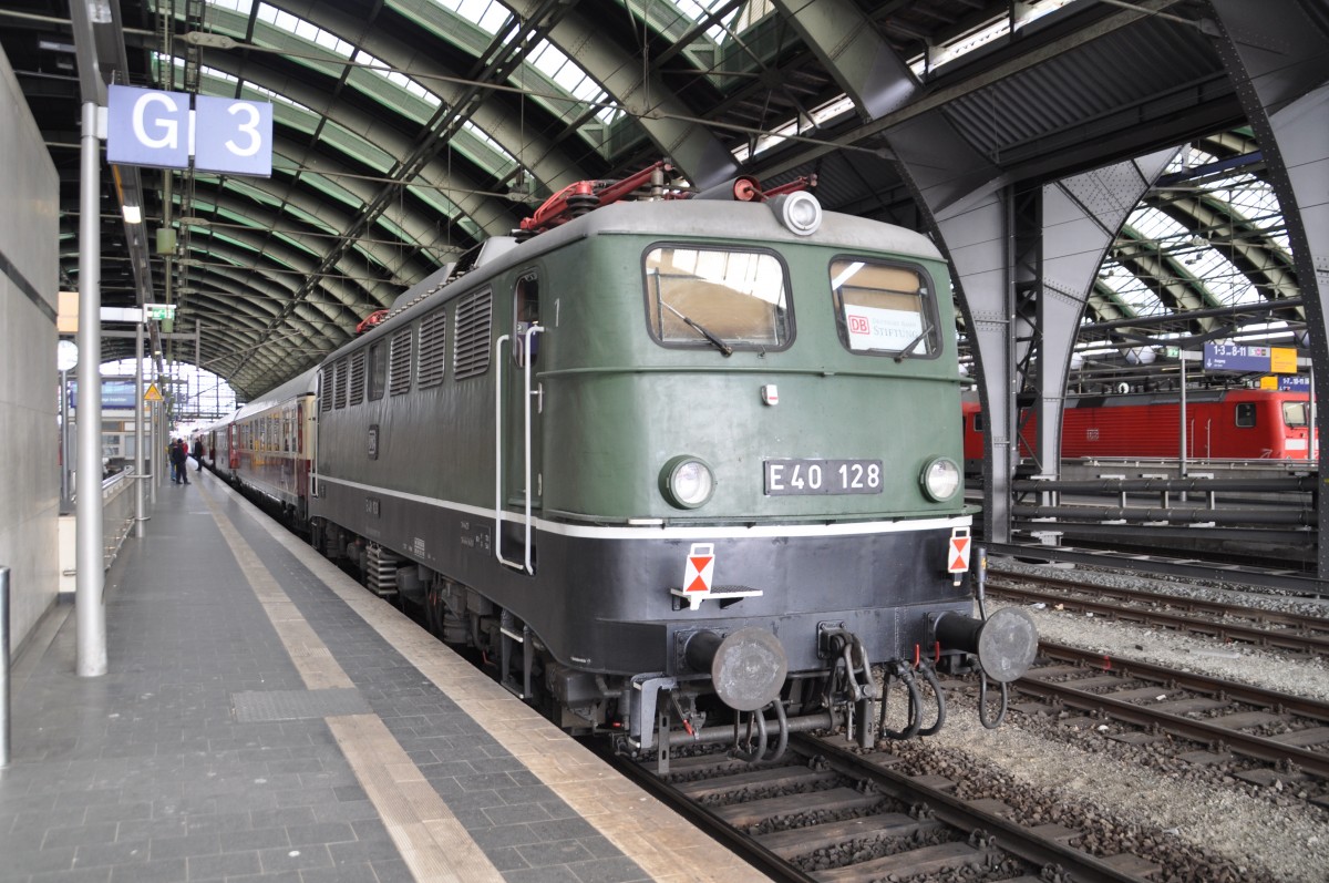 Sonnabend 18.04.2015 am Berliner Ostbahnhof steht als Schlußlok die E 40 128 am TEE -Sonderfahrt Ostbahnhof -Potsdam der DB Stiftung