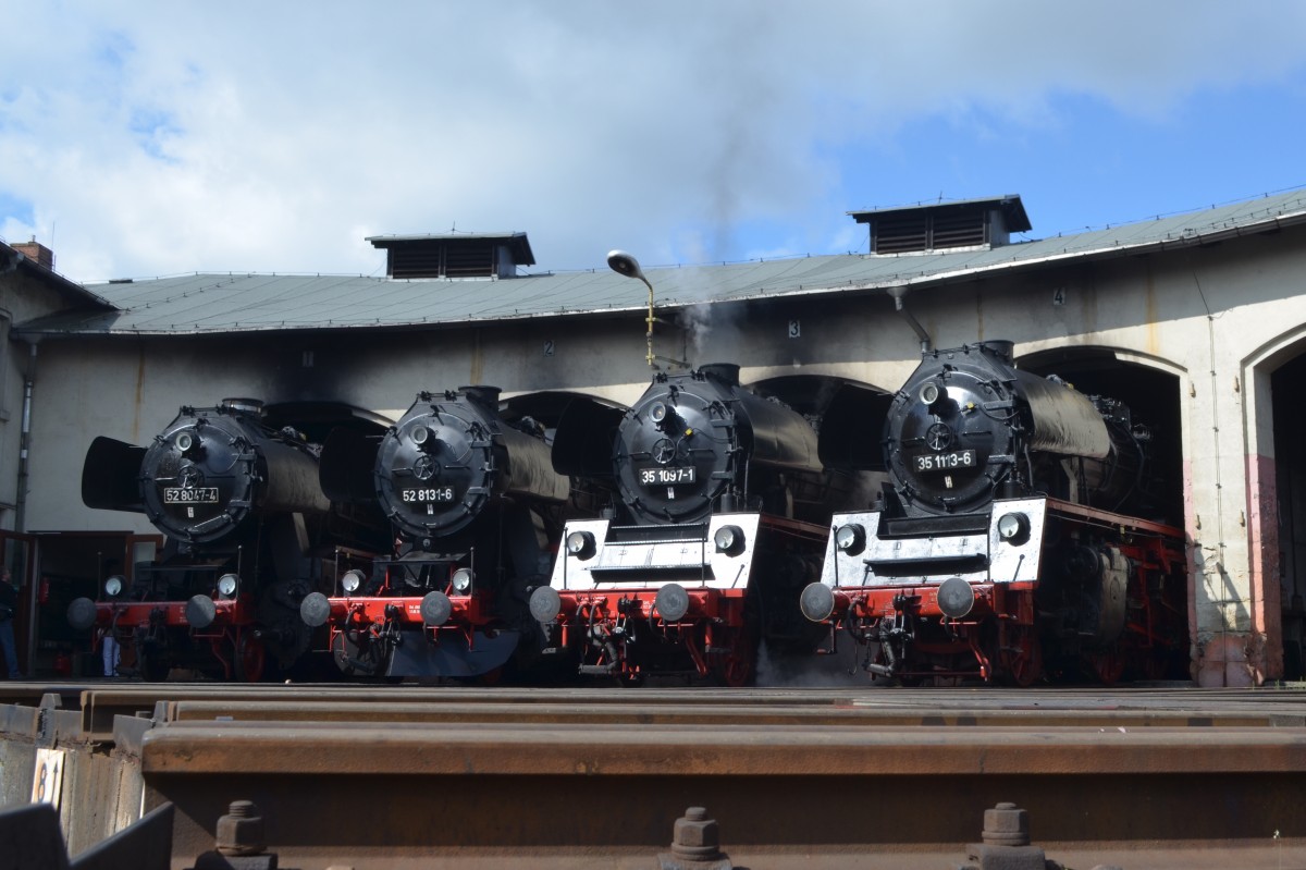 Zum 7. Dresdner Dampfloktreffen gab es einen Sonderzug nach Nossen und an diesem tag Öffnete auch das Museum, 52 8047-4, 52 8131-6,35 1097-1 & 35 1113-6 im Bw Museum Nossen des IG Dampflok Nossen e.V. 18.04.2015