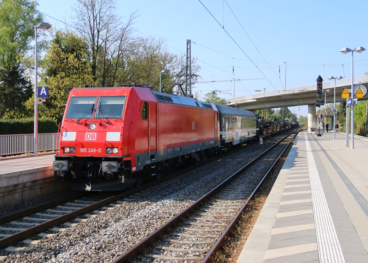 D 03 (270 010) mit einer Wagen-Überführung nach Viechtach am 18.04.2015 bei Teisnach.