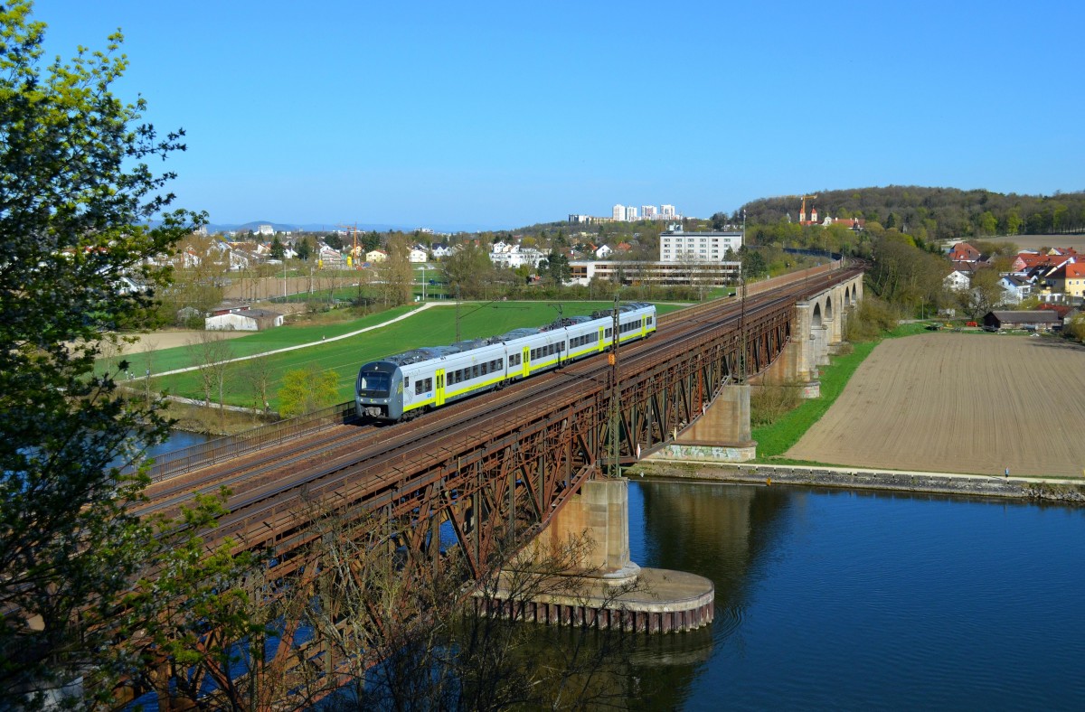 Im Land des VLEXX - RegioSwinger gibt´s nicht mehr! Bis Dezember 2014 brummten noch die RegioSwinger der Baureihe 612 durch das Tal der Nahe. Nun geht es viel leiser auf den Gleisen zu, denn die LINT Triebwagen sind wesentlich leiser, auch im Innenraum und man gleitet eher über die Gleise. Auch die Fahrzeiten haben sich durch die Sprint starken LINT (54 - 81) nicht verändert. 620 404 ist als RE Mainz - Saarbrücken unterwegs und ist pünktlich in Idar-Oberstein angekommen. Links oben im Hintergrund das Schloss von Idar-Oberstein. Bahnstrecke 3511 Bingerbrück - Saarbrücken Hbf. am 18.04.2015