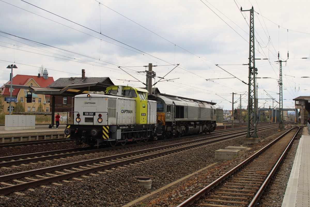 372 013-3 fährt am 18.04.15 durch Heidenau. Foto vom Bahnsteigende!
