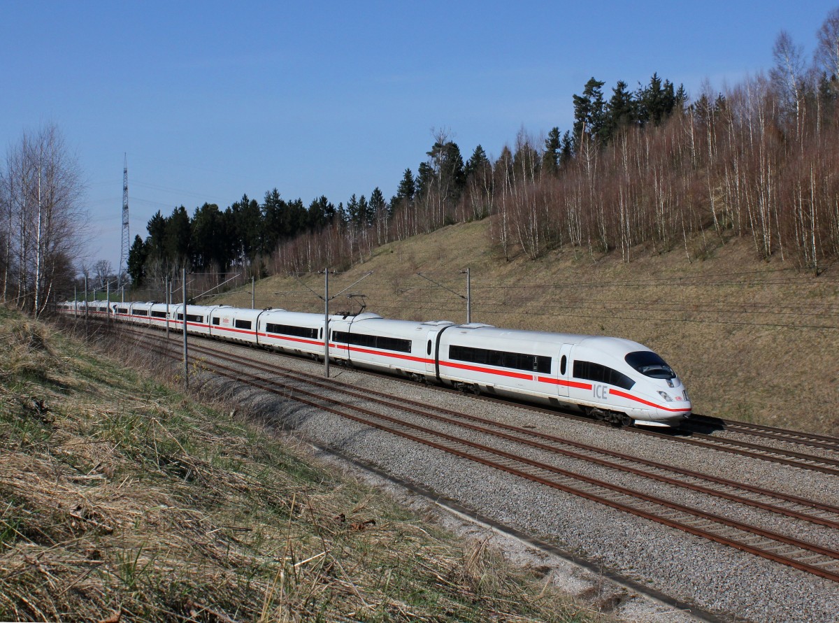 Ein ICE 3 nach München am 07.04.2015 unterwegs bei Unterweilbach.