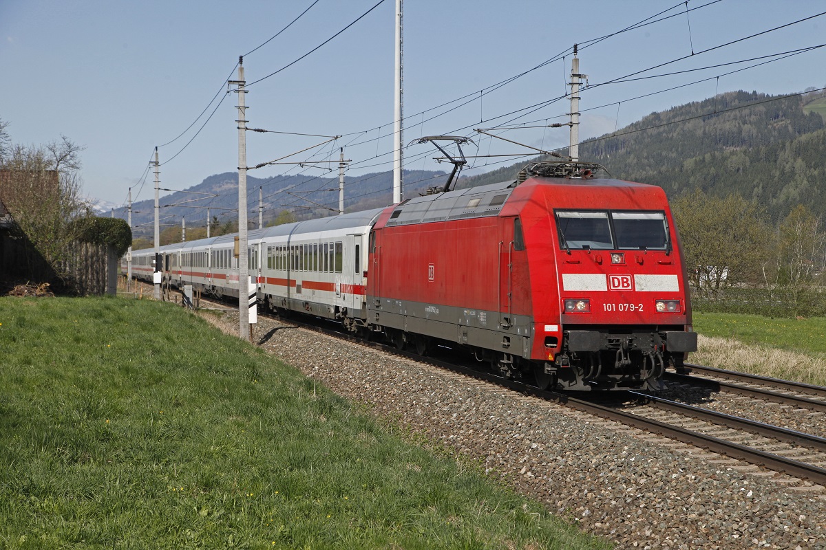 DB Fernverkehr 101 121 befindet sich mit IC 2312 am 20.04.15 in Diepholz (Abzweig Fliegerhorst) auf der Fahrt von Stuttgart Hbf nach HH-Altona.
