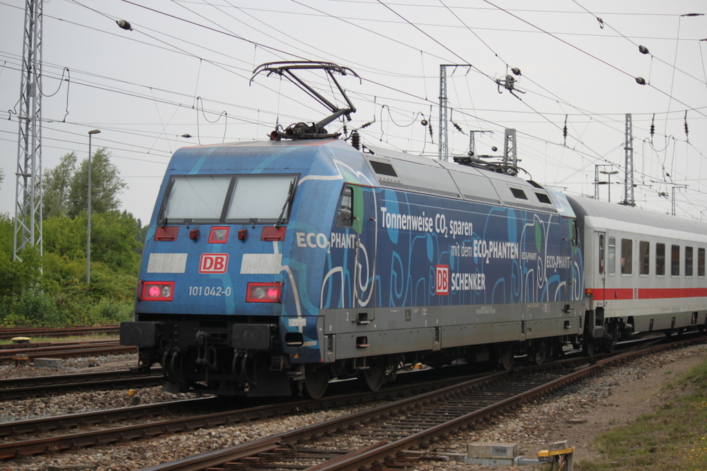 101 042-0 mit IC 2184(Hamburg-Binz)bei der Einfahrt im Rostocker Hbf.15.08.2015