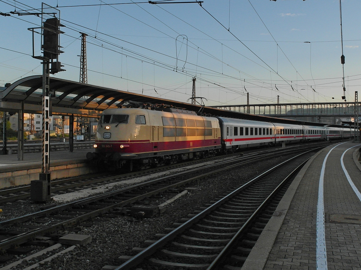 103 245-7 mit dem IC 2095, Ulm-München, am frühen Morgen des 02.07.2015 bei der Abfahrt aus dem Ulmer Hauptbahnhof.