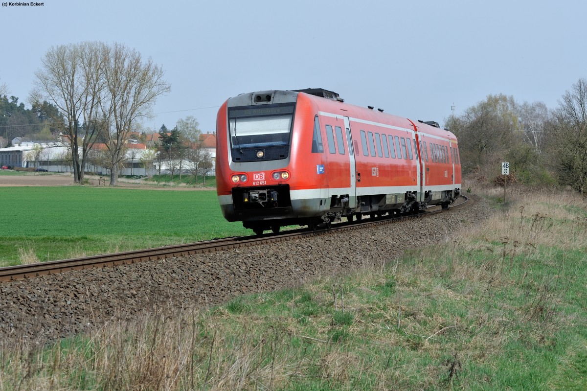 612 651 als RE 3512 von Neustadt (Waldnaab) nach Nürnberg Hbf bei Weiden (Oberpf), 04.04.2014