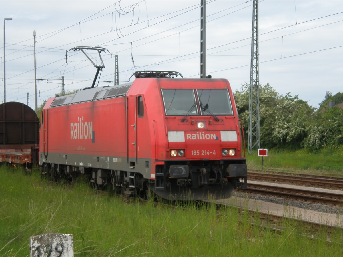 Am 02.06.2010 stand die 185 214 von DB Schenker Rail im Bahnhof Grimmen. Sie bespannte den Schadwagenzug von Rostock-Seehafen nach Eberswalde. Weshalb der Zug über die Nordbahn umgeleitet wurde ist mir leider unbekannt, dennoch sehr interessant.