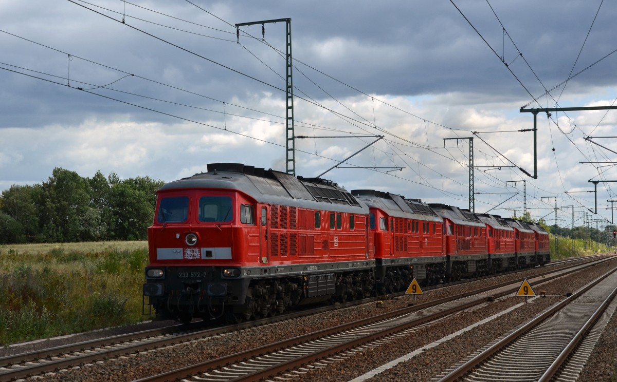 Am 09.07.15 schleppte 233 572 fünf weitere Ludmillen durch Rodleben Richtung Magdeburg. Alle Maschinen kamen bei den Marschbahn-Umleitern zum Einsatz. Bei den geschleppten Ludmillas handelt es sich um 232 668, 233 321, 232 280, 232 635 und um 233 285.