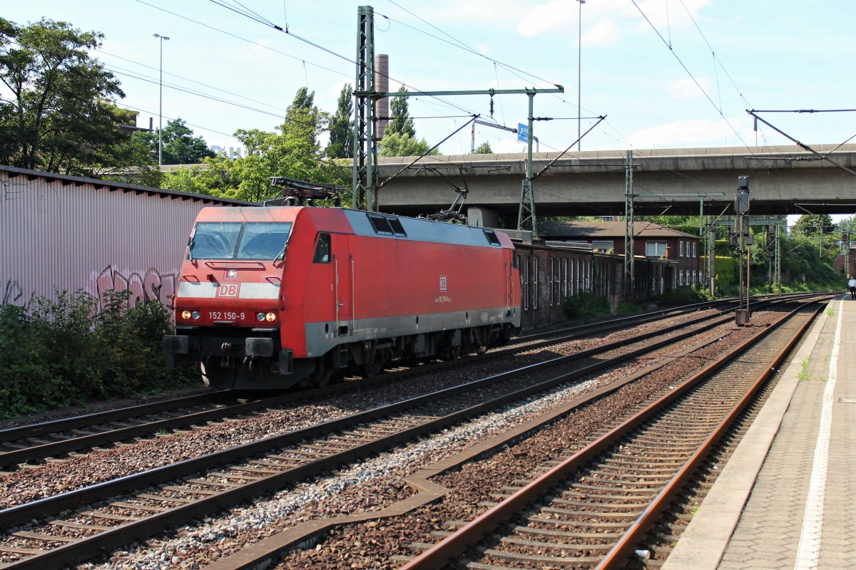 Am 13.08.2014 fuhr 152 150-9 als Tfzf durch den Bahnhof von Hamburg Harburg gen Maschen.