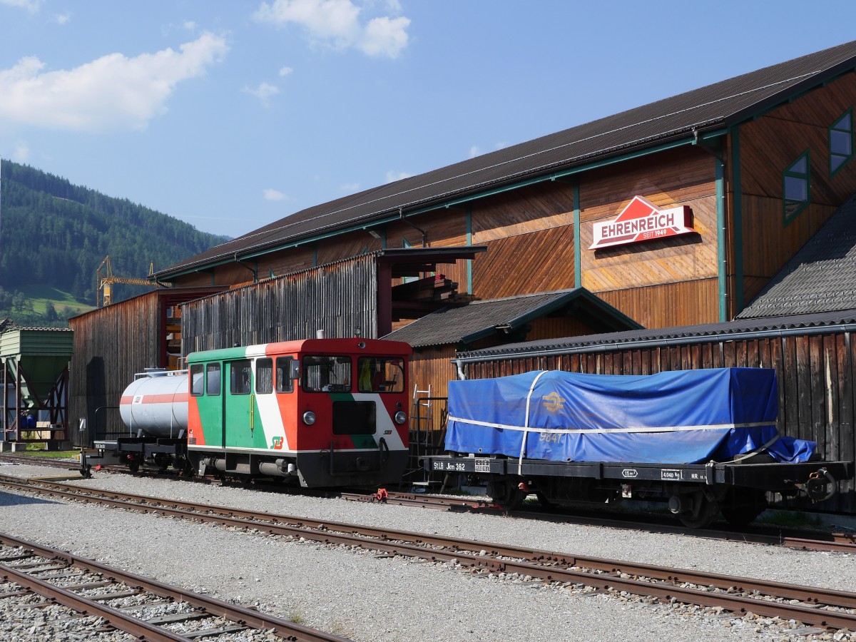 Auf dem Bahnhof Tamsweg (im Lungau) abgestellte Fahrzeuge der Murtalbahn; 13.08.2015