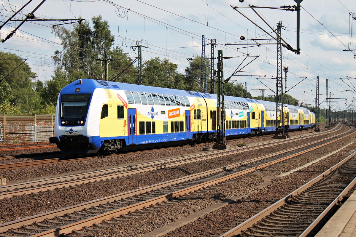 D-ME 55 80 86-73 204-4 am 13.08.2014 an der Spitze eines metronom Leerzug nach Hamburg Hbf bei der Einfahrt in Harburg. Schlusslok an diesem Tag war 146 534-3.