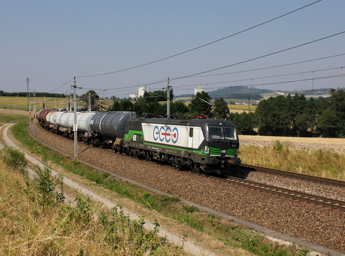 Die 193 211 mit einem Kesselzug am 14.08.2015 unterwegs bei Haiding.