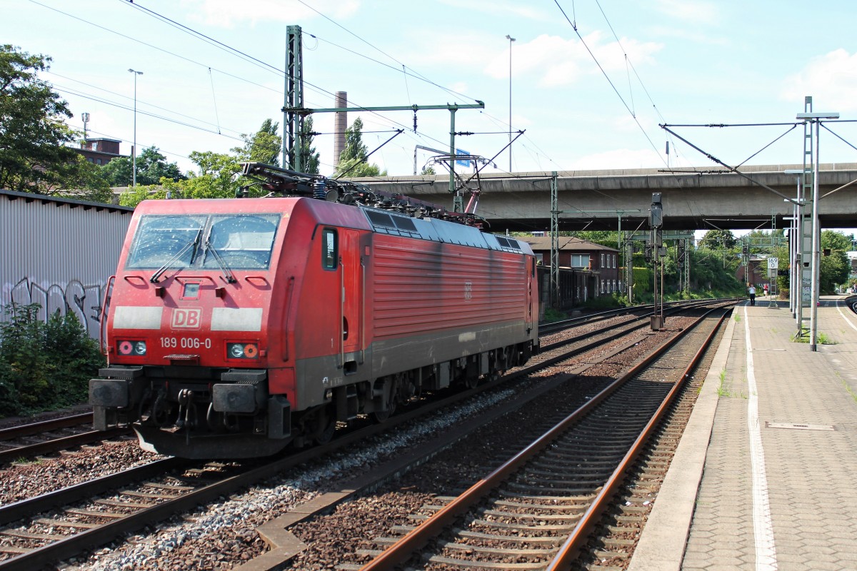Nachschuss auf 189 006-0 am 13.08.2014 als Tfzf gen Waltershof in Hamburg Harburg.