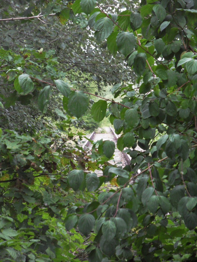 Ziemlich viel hat sich die Natur schon zurückerobert. Es ist ein schöner Tunnel entstanden. Aufgelassenes Anschlussgleis zu einem Gewerbegebiet bei Ingolstadt. Die Aufnahem entstand am 30 Juli 2015.