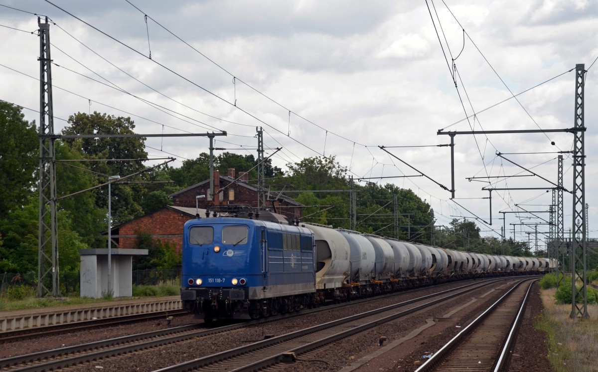 151 033-8 ist am 21.08.2015 mit Zement nach Geseke unterwegs. Aufgenommen bei Timmerlah.
