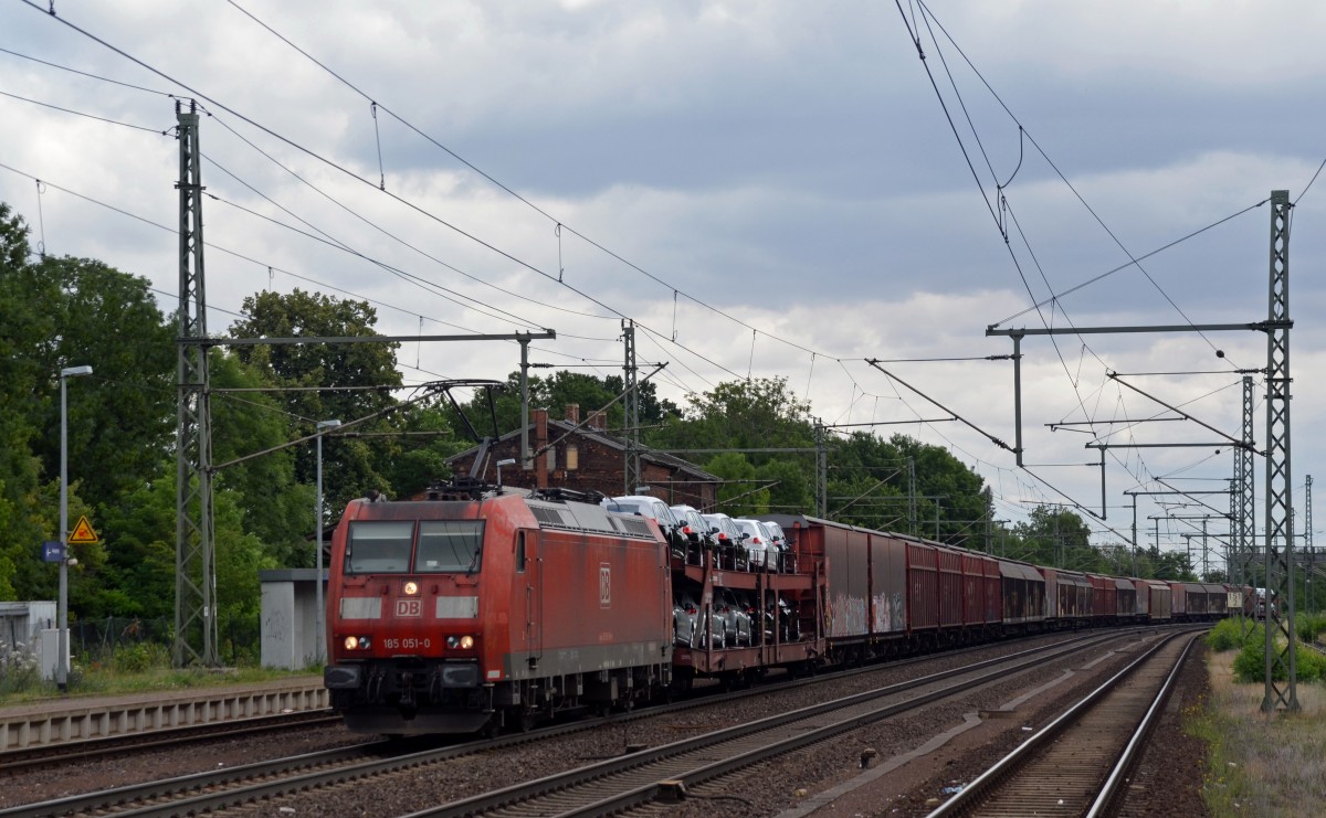 185 051 zog einen Zug der VW Autologistik von Zwickau kommend durch Niederndodeleben Richtung Braunschweig.