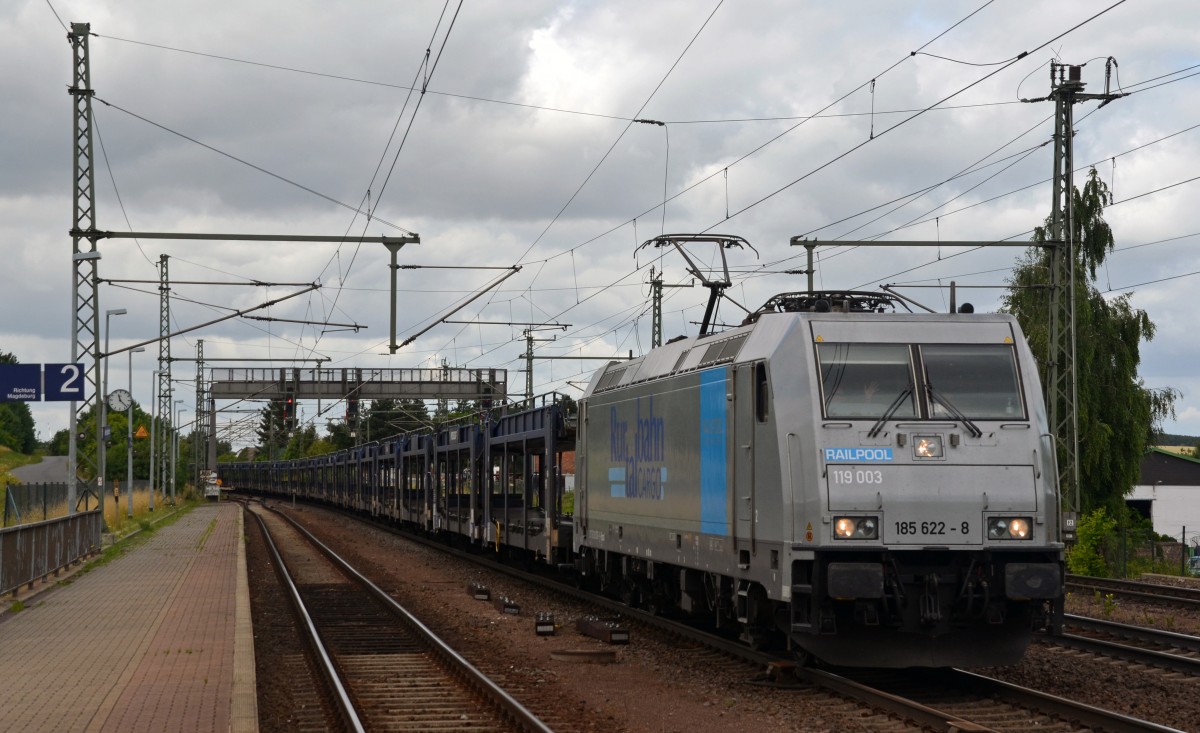 185 622 der Rurtalbahn führte am 10.07.15 einen leeren Autozug durch Niederndodeleben Richtung Magdeburg. Gruß an den Tf!