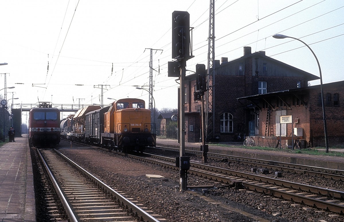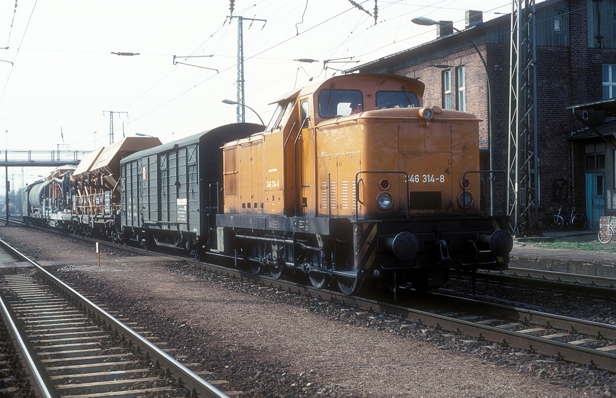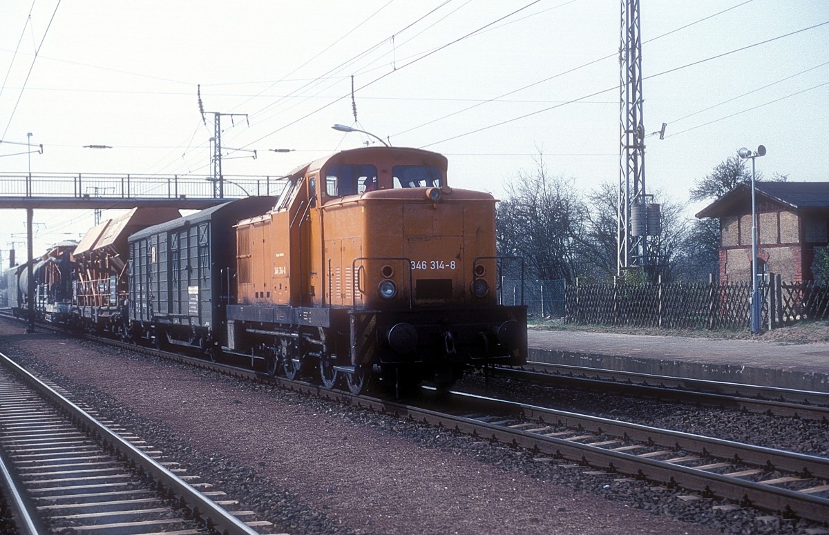 Köf II Nr. 100411 der DR am 22.6.1991 im Bahnhof Roßla.