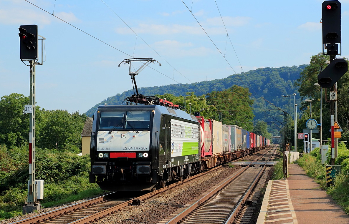 E 189-287 der MRCE ist am 22.08.2015 in Namedy in Richtung Norden unterwegs