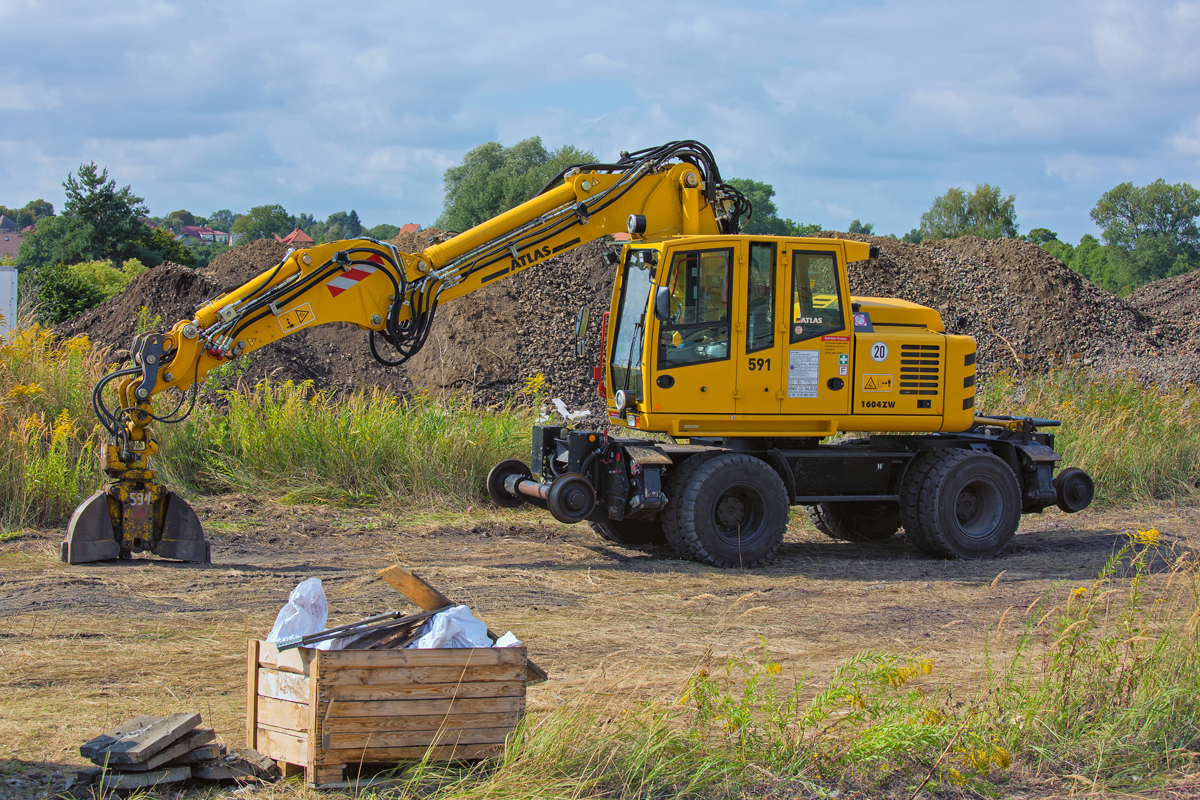 Atlas 1604 ZW steht auf dem Bahnhof Pasewalk für Gleisbauarbeiten bereit. - 28.08.2015