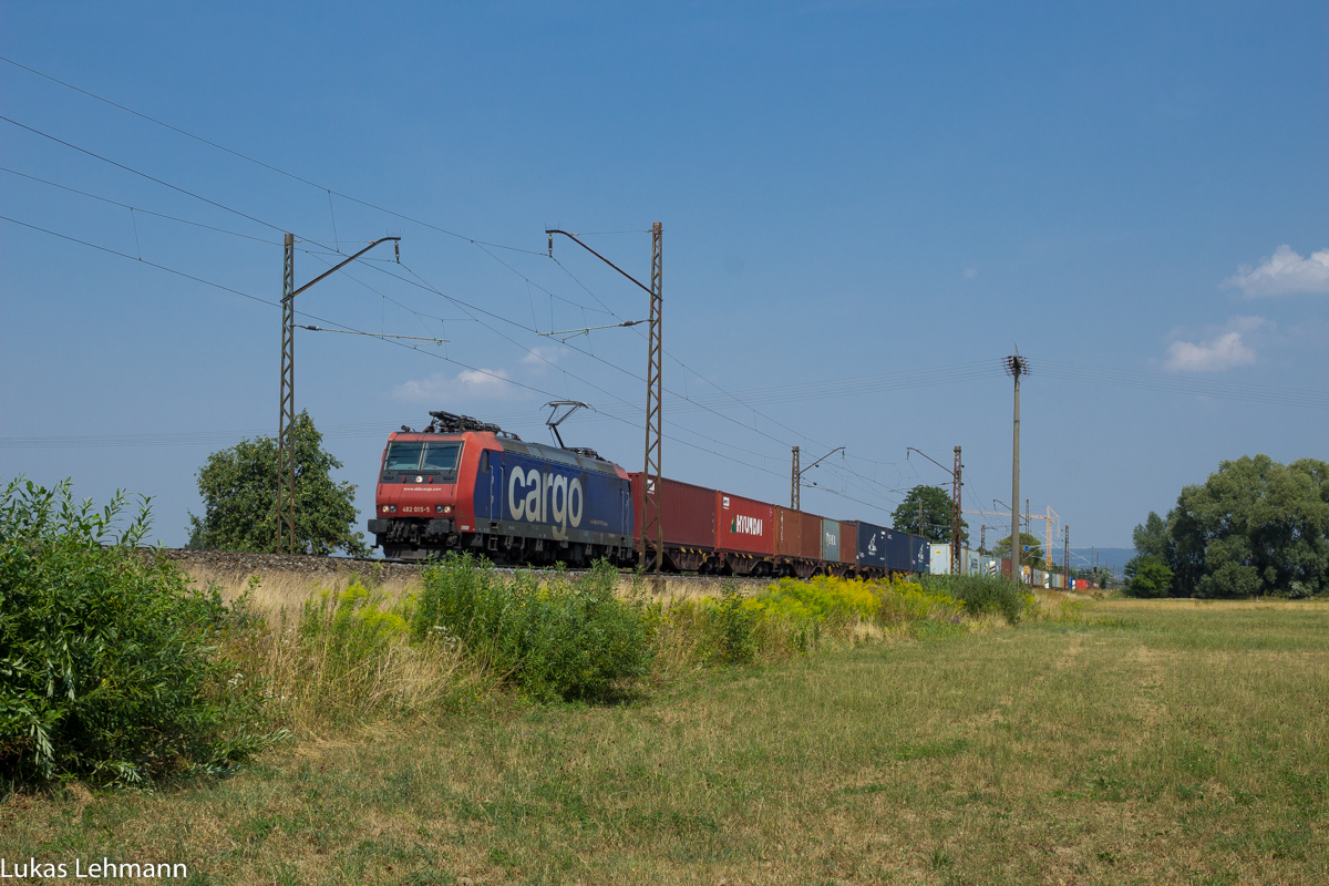 Eine 482 015-5 zieht einen Containeerzug in Baiersdorf am 12.08.2015