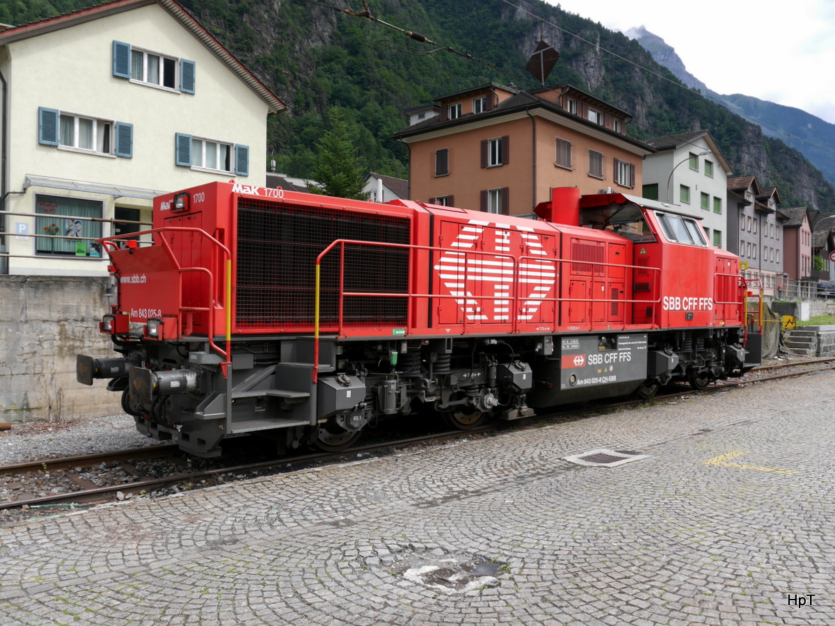 SBB - Rangierlok Am 843 25-8 abgestellt im Bahnhofsareal in Erstfeld am 01.08.2015