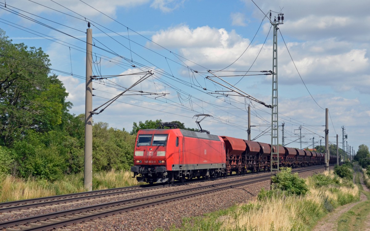 145 022 führte am 10.07.15 einen Schüttgutzug durch Wellen Richtung Braunschweig.