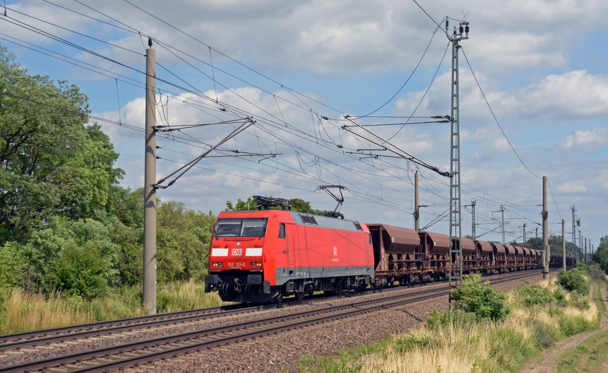 152 121 zog am 10.07.15 einen Schüttgutzug durch Wellen Richtung Braunschweig.
