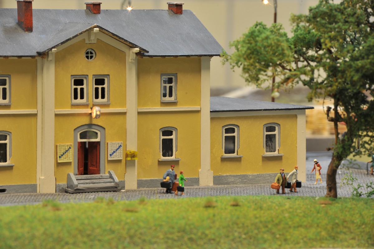 Das Bahnhofsgebäude Tirschenreuth im Maßstab 1:87. Das Original wurde 2009 abgerissen. (Bahnhofsmodell Tirschenreuth), 03.04.2015