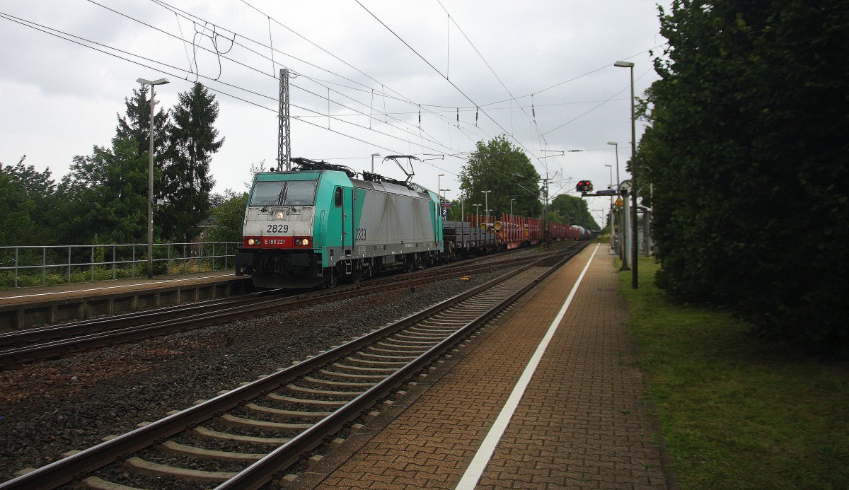 Die Cobra 2829 kommt als Umleiter mit einem langen gemischten Güterzug aus Köln-Gremberg(D) nach Antwerpen-Noord(B) und fährt durch Kohlscheid aus Richtung Herzogenrath und fährt die Kohlscheider-Rampe hoch nach Aachen-West.