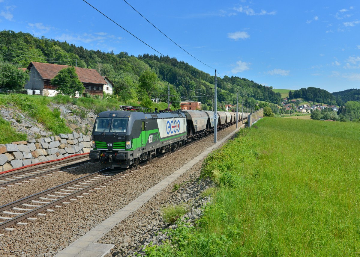193 212 mit einem Getreidezug am 29.06.2015 bei Wernstein am Inn.