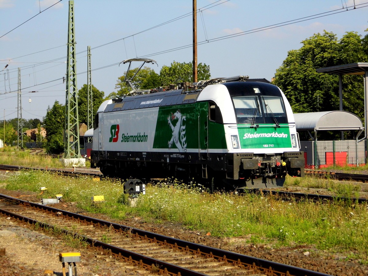Am 03.08.2015 Rangierfahrt von der 183 717 von der SETG (Steiermarkbahn) in Stendal .
