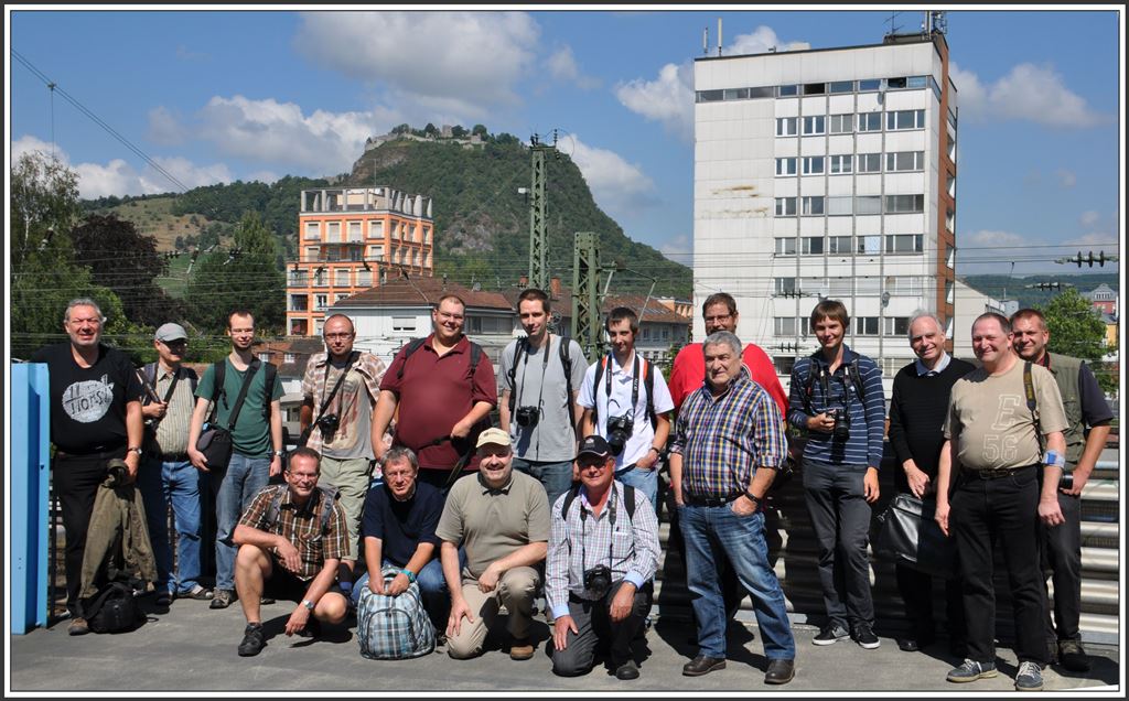 Hier nochmals das Gruppenbild vom Bahnbilder-Treffen in Singen mit ausgetauschter Mittelperson in der vorderen Reihe. Olli als Organisator darf da nicht fehlen. (02.08.2015)