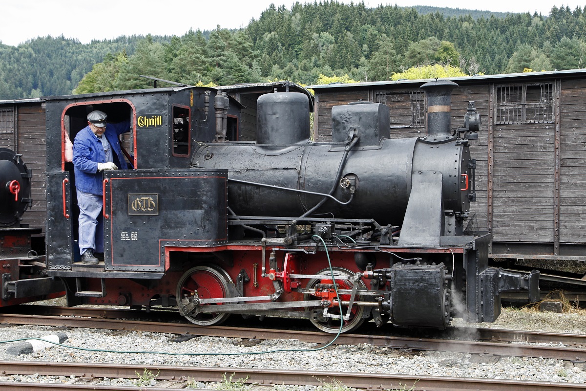 Typenbild der Lok Christl (Hanomag Baujahr 1916) in Pöckstein - Zwischenwässern am 2.08.2015.