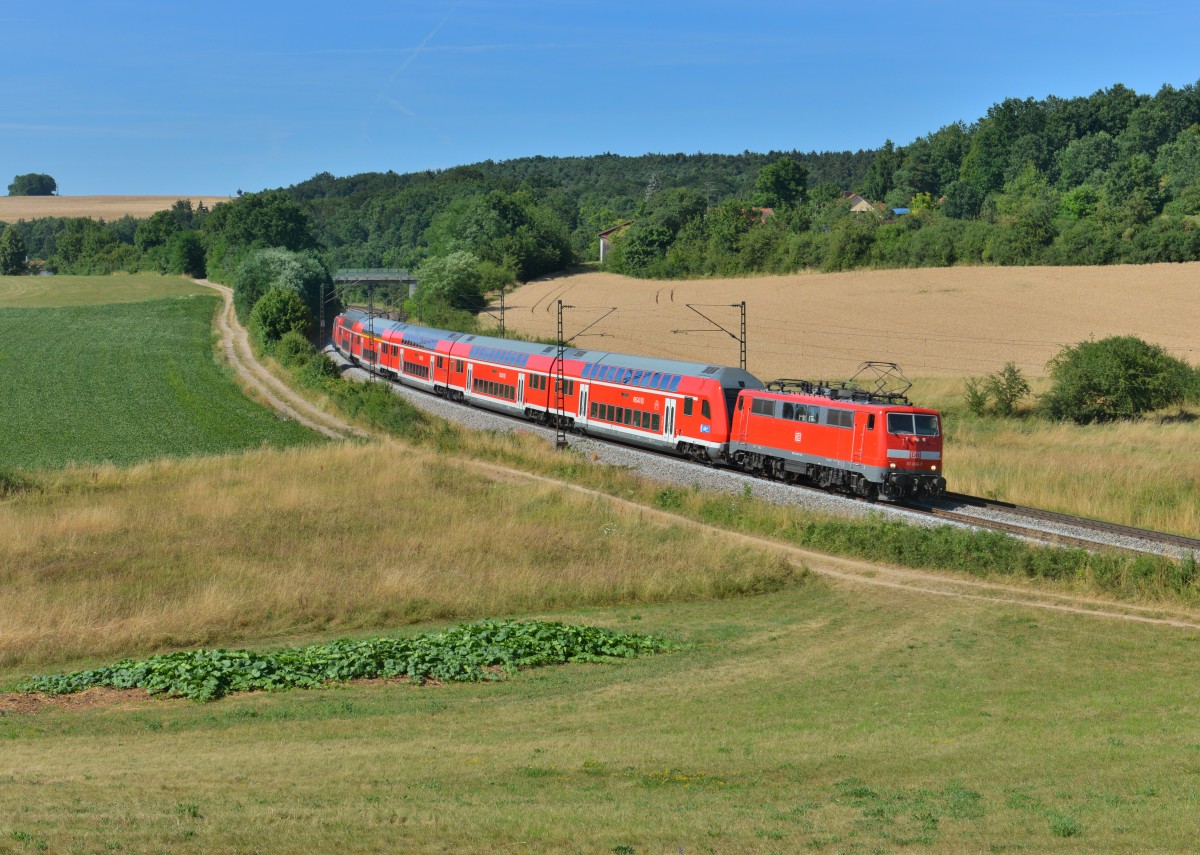 111 066 mit einem RE nach München am 26.07.2015 bei Edlhausen.