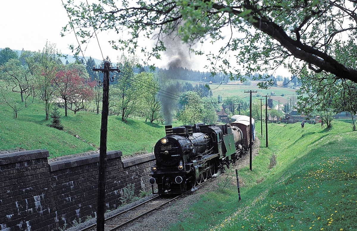 OeBB: "GROSSVERKEHR AUF DER OeBB" Infolge eines kantonalen Grossanlasses vom Juli 1994 in Balsthal kam es bei der OeBB zur Führung von interessanten Zusatzzügen und Zugsverstärkungen. Zusatzzug mit vier ausrangierten SBB-Leichtstahlwagen und den OeBB Ce 2/2 102 bis Ce 2/2 103 (1944) an beiden Enden. Dank dieser Zugsformation konnten die Umfahrungen der Personenwagen in Oensingen und Balsthal vermieden werden. Die einmalige Aufnahme ist auf der Fahrt nach Oensingen bei Klus Maiacker entstanden. Noch sind beide Loks in Balsthal in nicht betriebstüchtigem Zustand abgestellt.