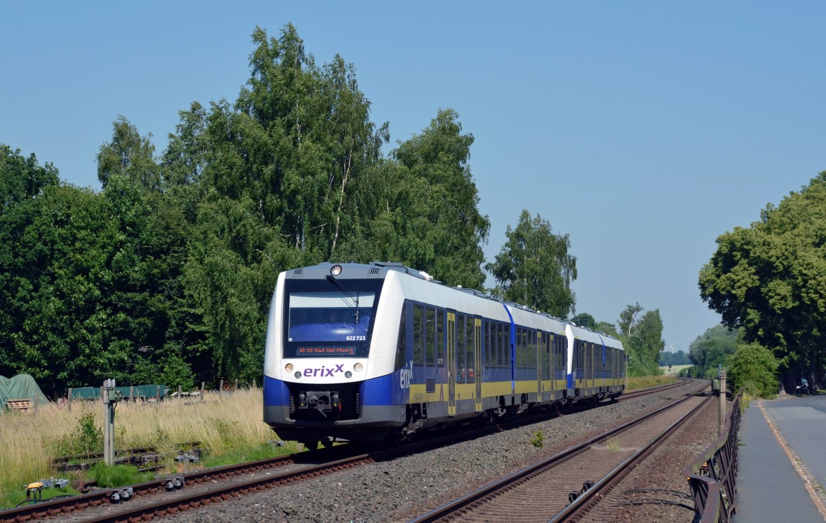 622 223 war am 02.07.15 mit als führendes Fahrzeug eines RE von Hannover nach Bad Harzburg unterwegs als Othfresen passiert wurde.
