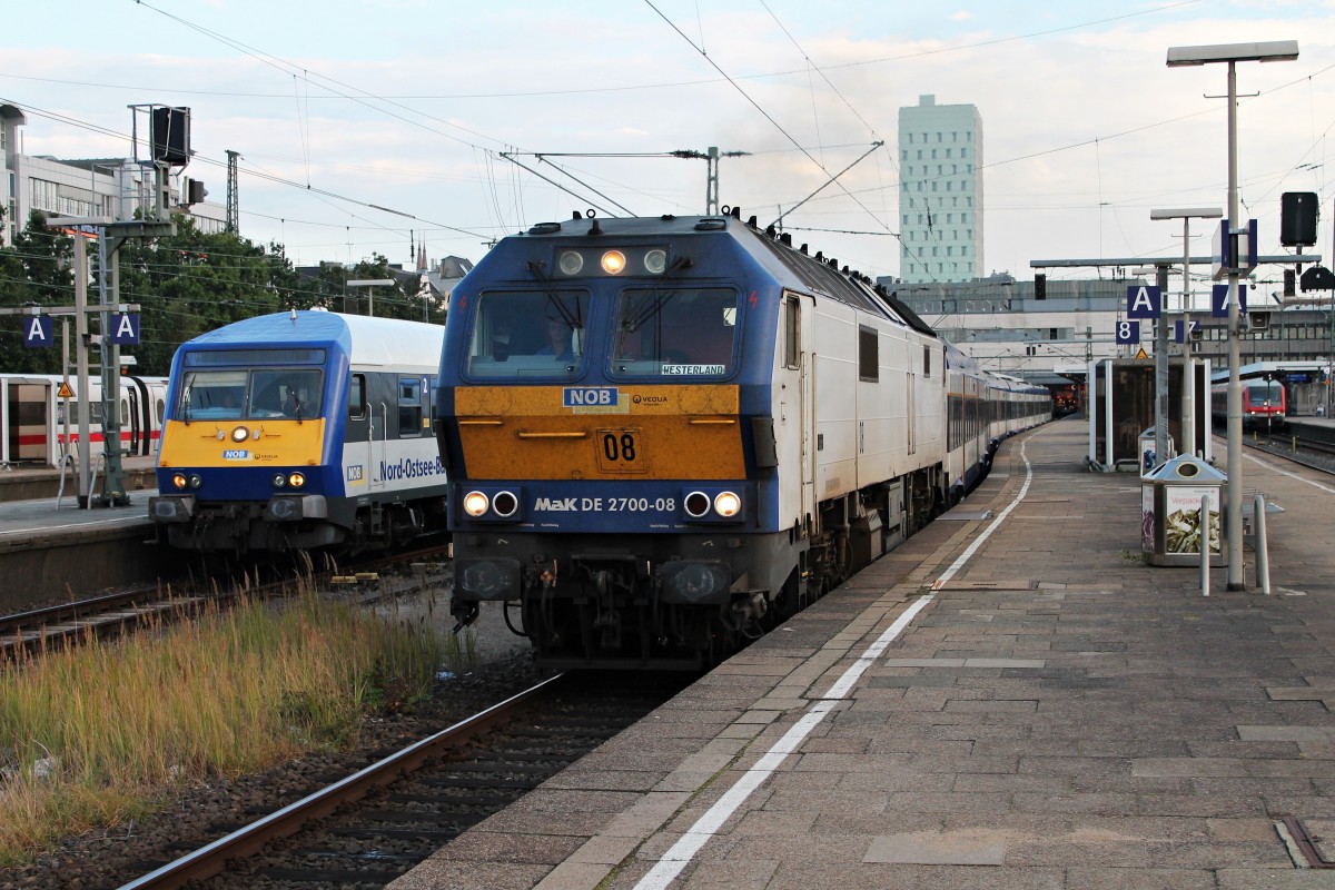 Ausfahrt am 12.08.2014 von MaK DE 2700-08 (251 008-9) mit einer NOB nach Westerland (Sylt) in Hamburg Altona.