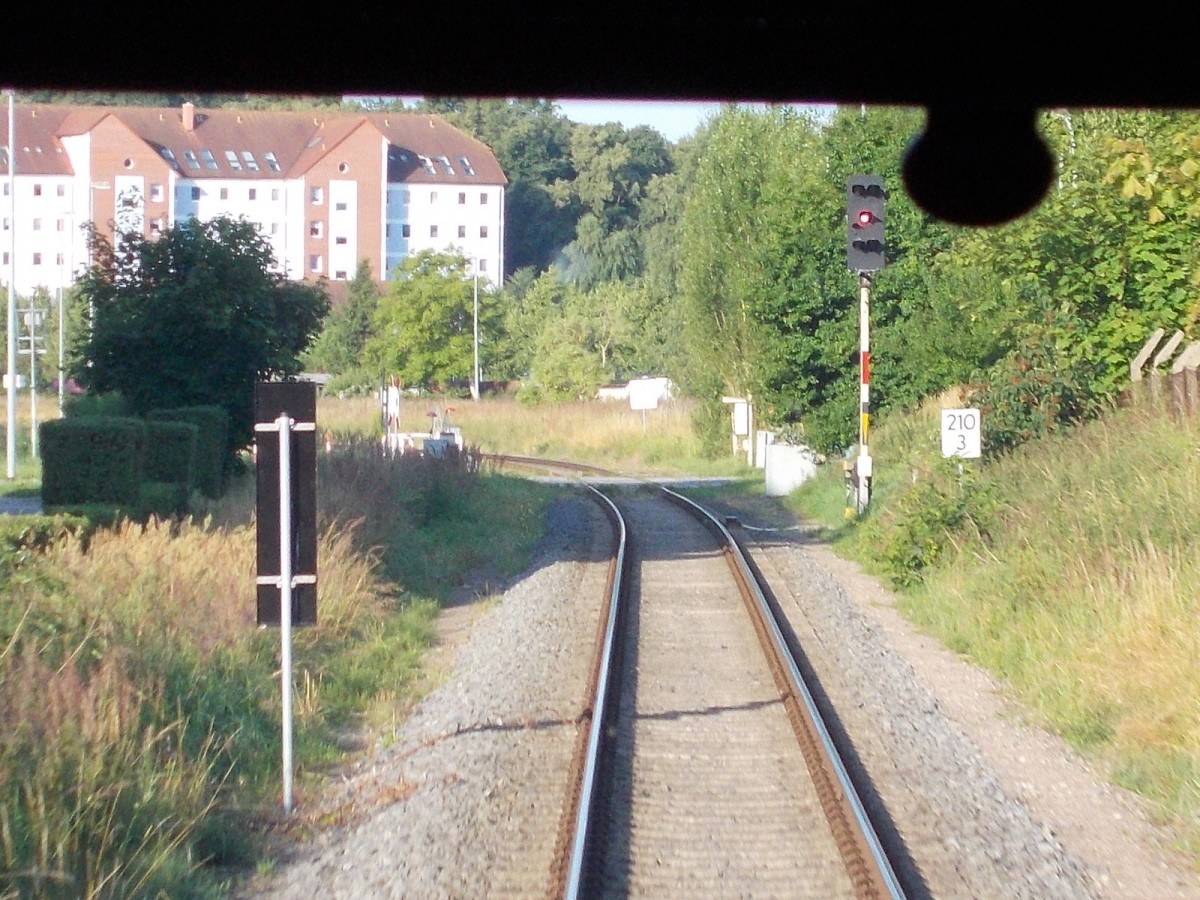 Das Einfahrsignal von Wolgast am 02.August 2015 aus dem UBB Rückfenster.