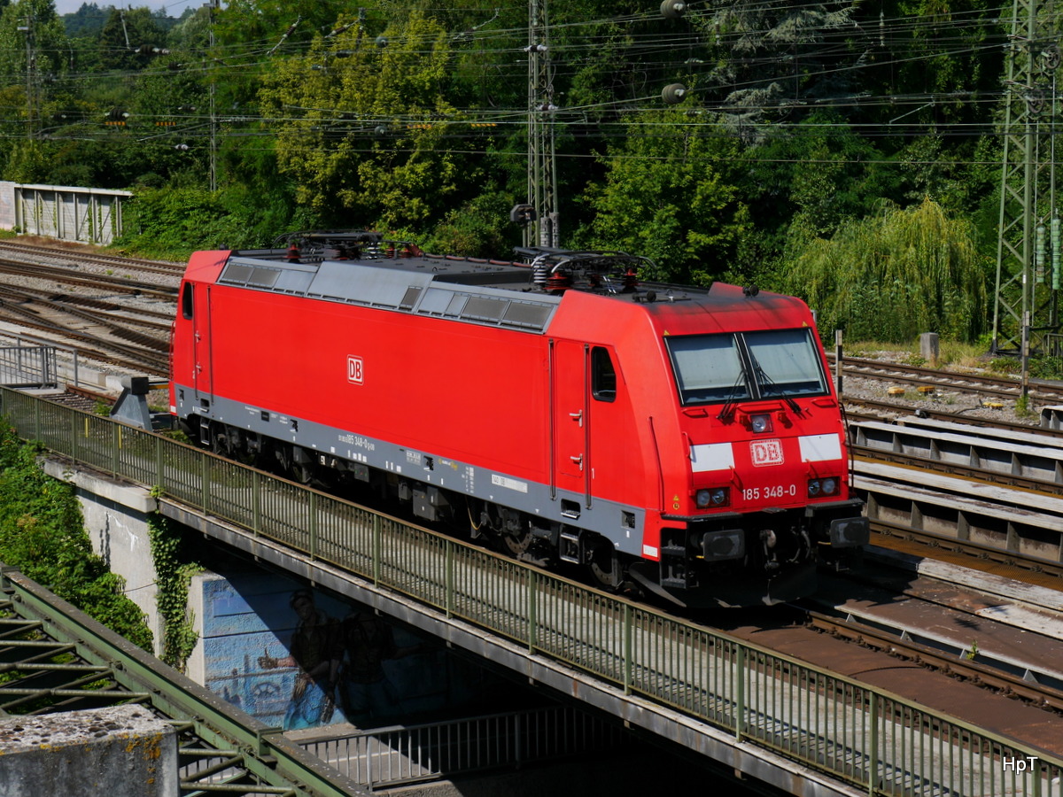 DB - 185 348-0 abgestellt im Bahnhofsareal beim Bahnbildertreffen in Singen am 02.08.2015