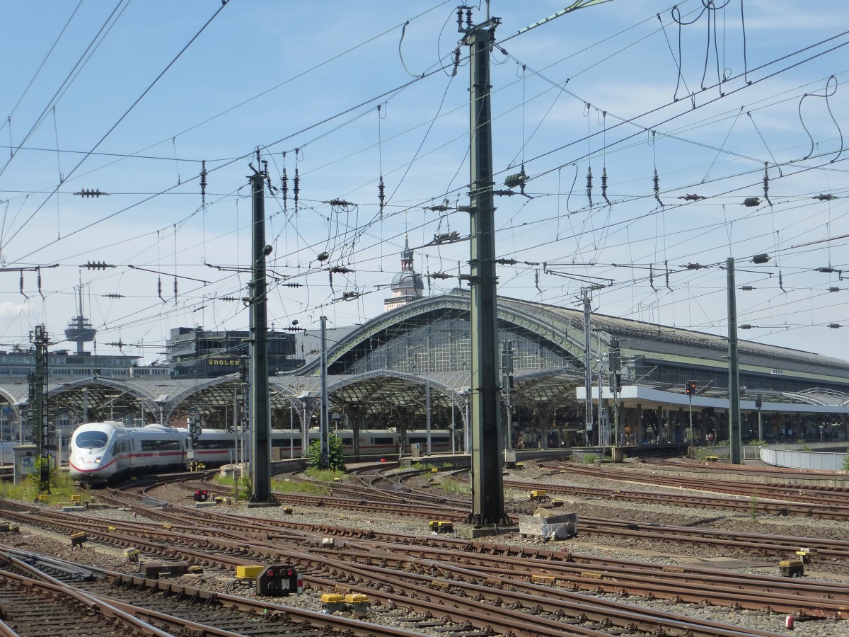 Der Kölner Hauptbahnhof am 01.08.2015. Gerade fährt ein ICE in Richtung Messe/Deutz aus.