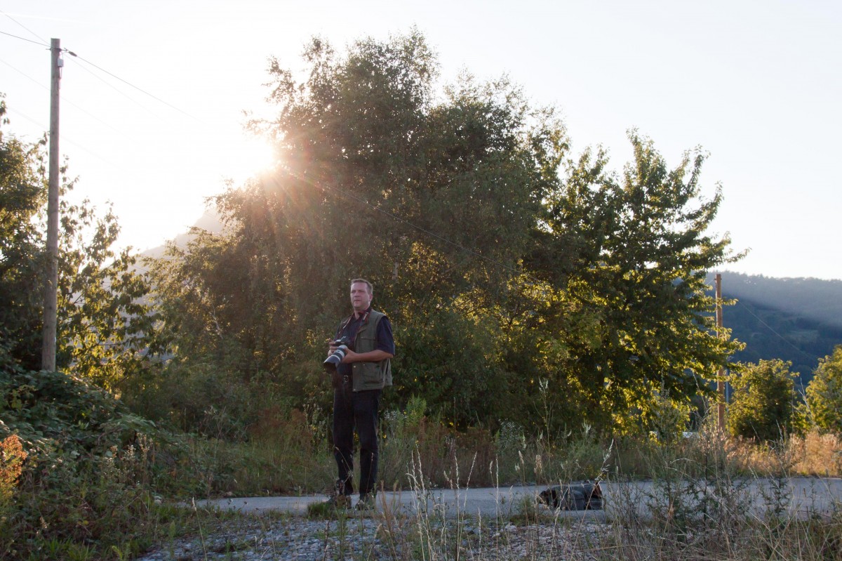Der Fotograf und die Sonne, kurz bevor sich letztere hinter dem Hohenhewen verkriecht.