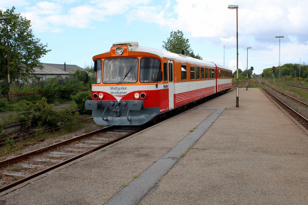 Midtjyske Jernbaner Lemvigbanen: MjbaD Ym 16 + Ys 16 (DUEWAG 1983) Bahnhof Vemb am 9. Juni 2015. - Auf der Lemvigbanen (Vemb - Lemvig - Thyborøn) fahren die letzten Triebzüge dieses Typs.