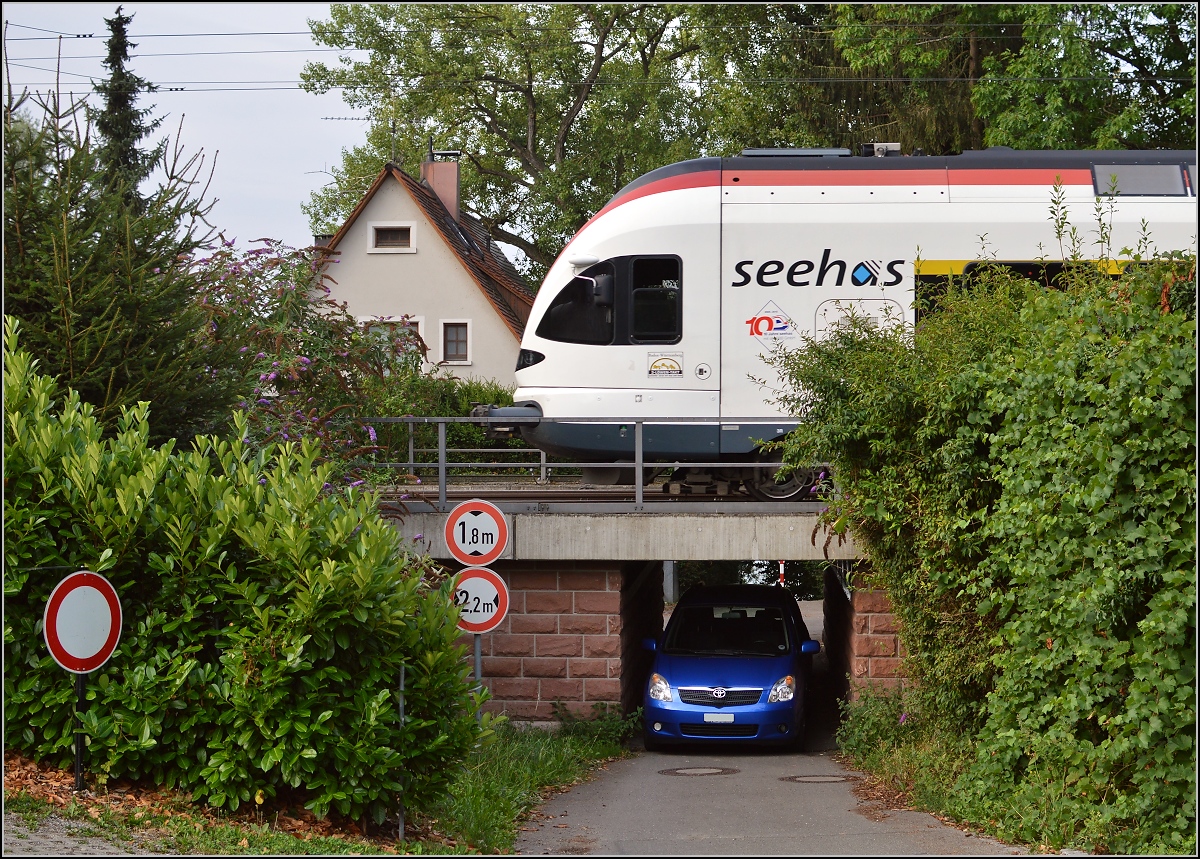 Noch ein kleiner Spaß der Unentwegten mit Größenvergleich auf dem Weg zum Bahnbildertreffen... Allensbach, August 2015.