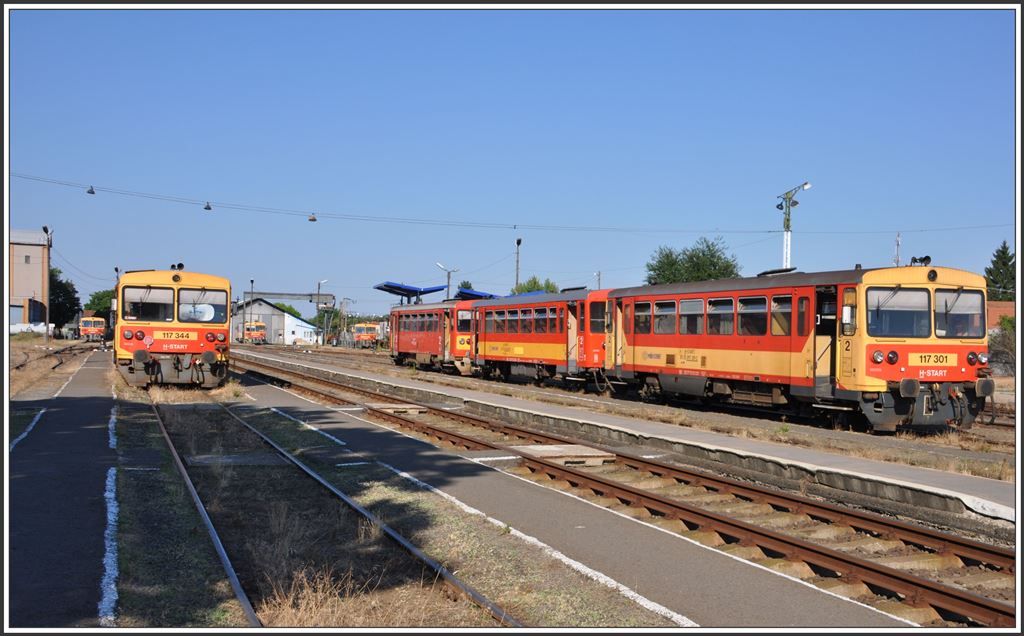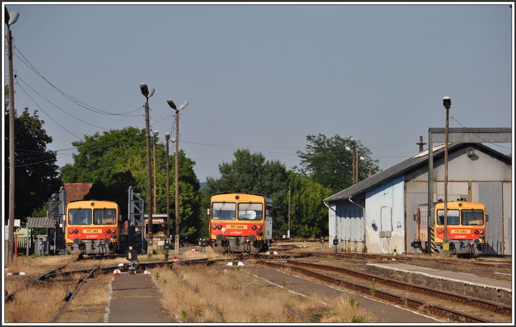 In Balassagyarmat gibts nur eine Sorte Fahrzeuge, 117er und dazugehörige Wagen (04.07.2015)